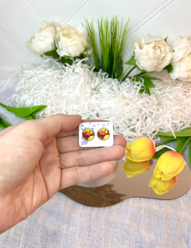 náušnice ve tvaru kruhu v oranžové a červené barvě se západem slunce
