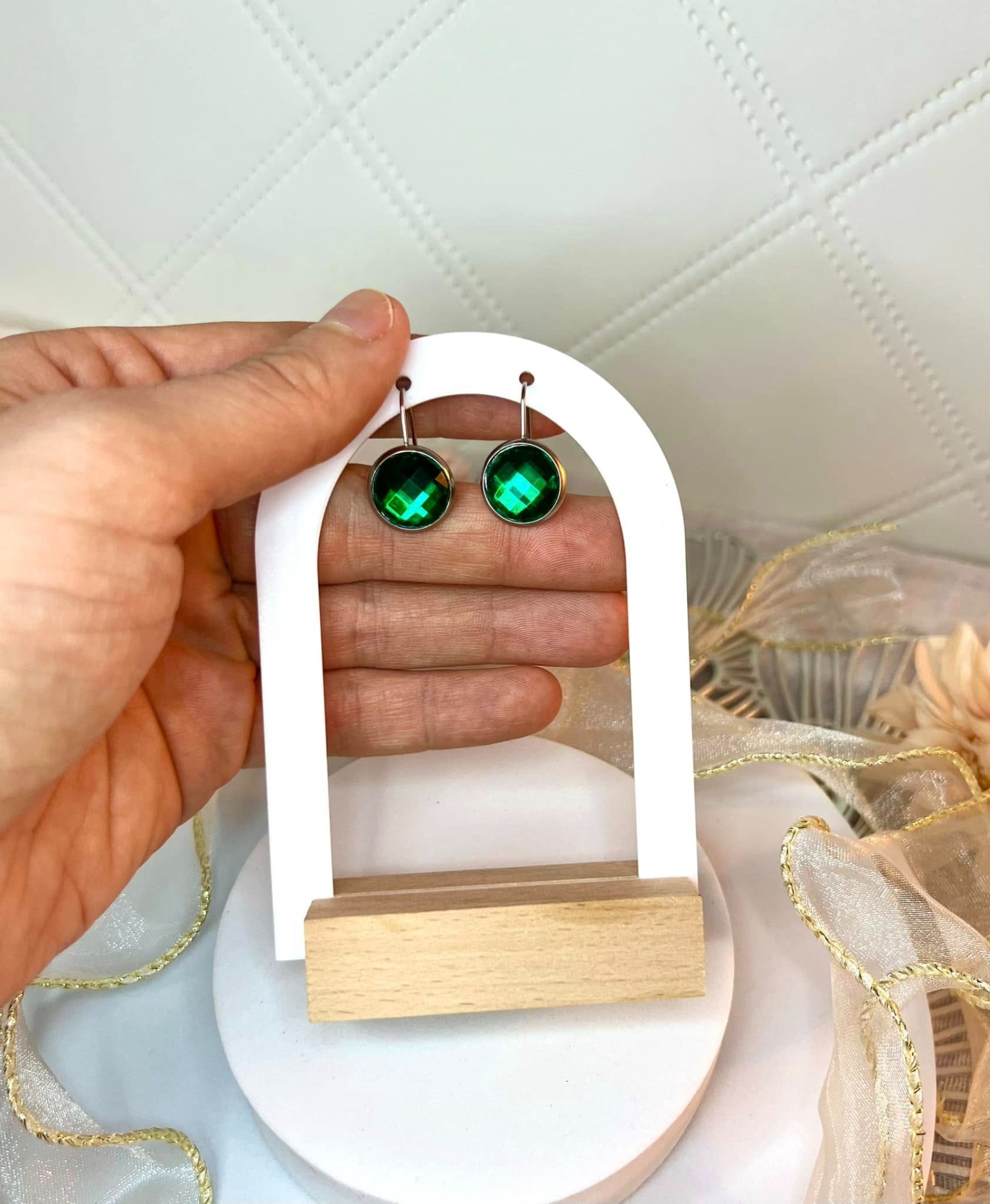 náušnice ve tvaru kruhu v zelené barvě s leskem