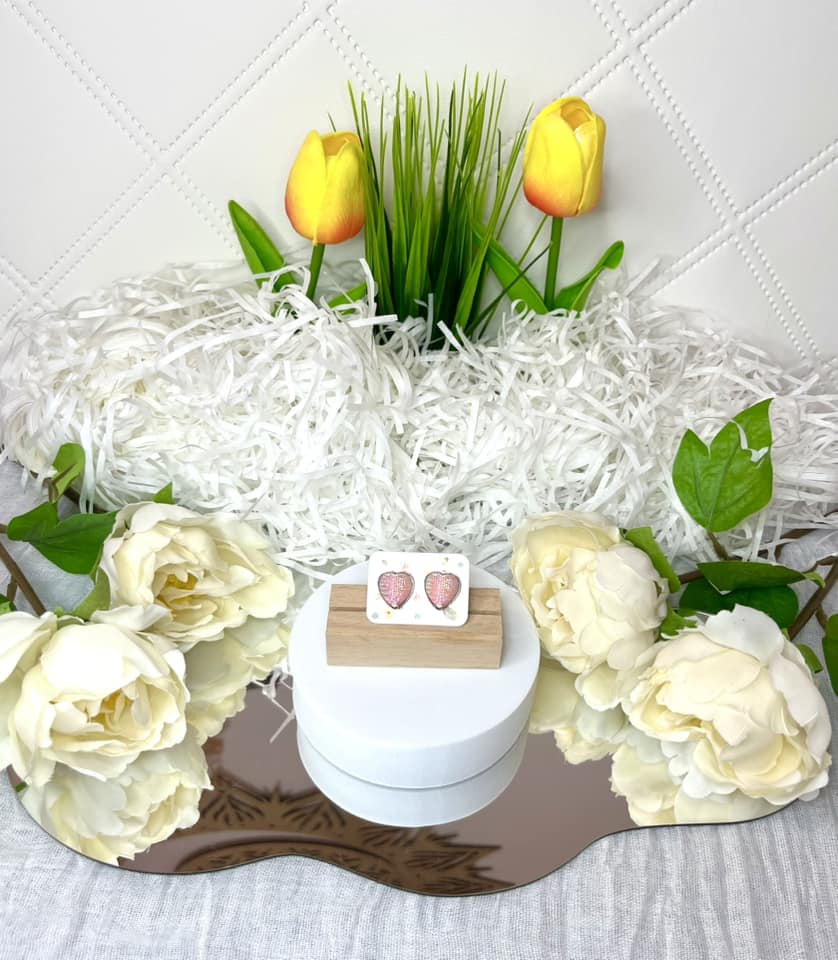 náušnice ve tvaru srdce ve světle růžové barvě